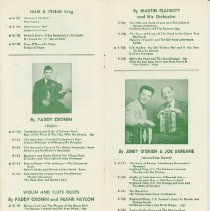 All-Star Ceilidhe Band, The Carton, Mary Casson, Christopher Cronin, Paddy Derrane, Joe Don Messer and His Islanders Doran, Felix Feeney, John Foley, Connie Hayden, Dorothy Hum & Strum Irish All-Stars, The Jerry and His Hayshakers Lauder, Harry MacDonald, Dan R. Martin Flaherty and His Orchestra Mattie Toohy and His Irish Minstrels McManus, Dorothy McNulty Family, The McNulty, Peter Mickey Carton and His Orchestra Morrisey, Ruthie Neylon, Frank O'Brien, Jerry O'Brien, Thomas Powell, Johnny Reck, Tommy Ryan, Bill Wilson, John |